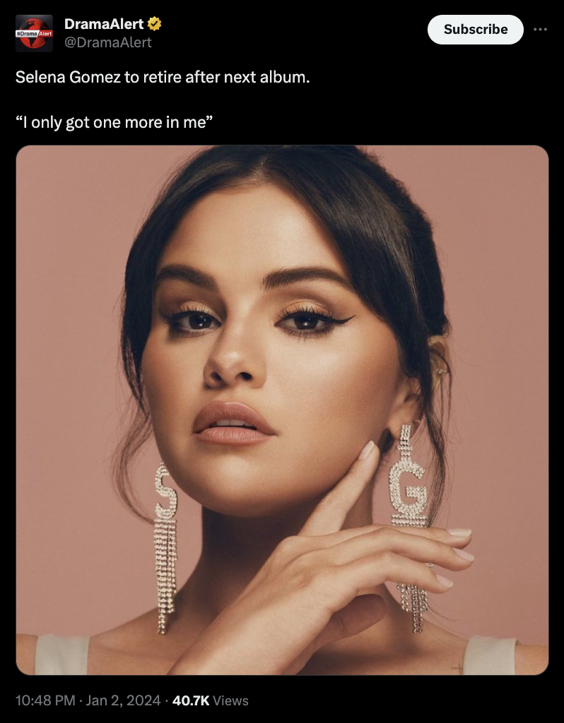 Selena Gomez ist eine der beliebtesten Künstlerinnen der Welt und das schon seit Jahren. Doch jetzt scheint es so, als ob der US-Superstar die Musik-Karriere an den Nagel hängen wird…