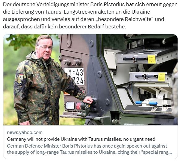 „Wir sind nicht die einzigen, die nicht liefern. Auch unsere amerikanischen Verbündeten liefern diese Marschflugkörper nicht. Unsere haben eine besondere Reichweite“