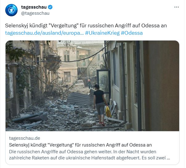„Wie immer wird auch dieses Böse verlieren. Und es wird für Odessa definitiv eine Vergeltung gegen die russischen Terroristen geben“