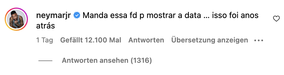 Schreibt Neymar auf einer Insta-Seite, die den Chat veröffentlicht.