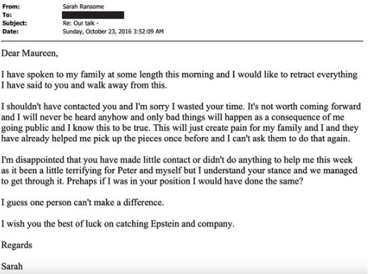 Ransome wird 2006 in Epsteins Sexring zur Ausbeutung gelockt. Das ist durch Urteile bestätigt.