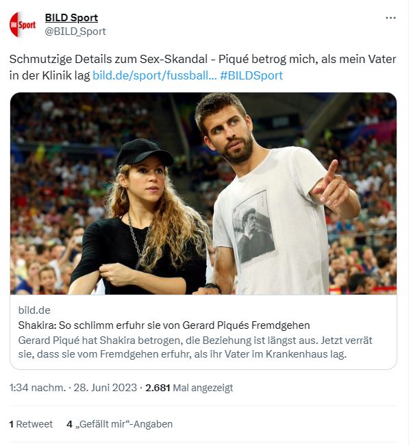Die Schlammschlacht zwischen Shakira und ihrem Ex Gerard Pique ist noch immer nicht beendet. Jetzt legt die Popsängerin mit schmutzigen Details nach.