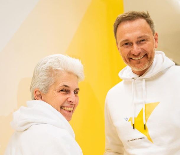 Cringe-Post der FDP-Parteispitze um Christian Lindner und Marie-Agnes Strack-Zimmermann: Beide posieren lächelnd in Pro-Ukraine-Pullis und fordern den Sieg der Nation.