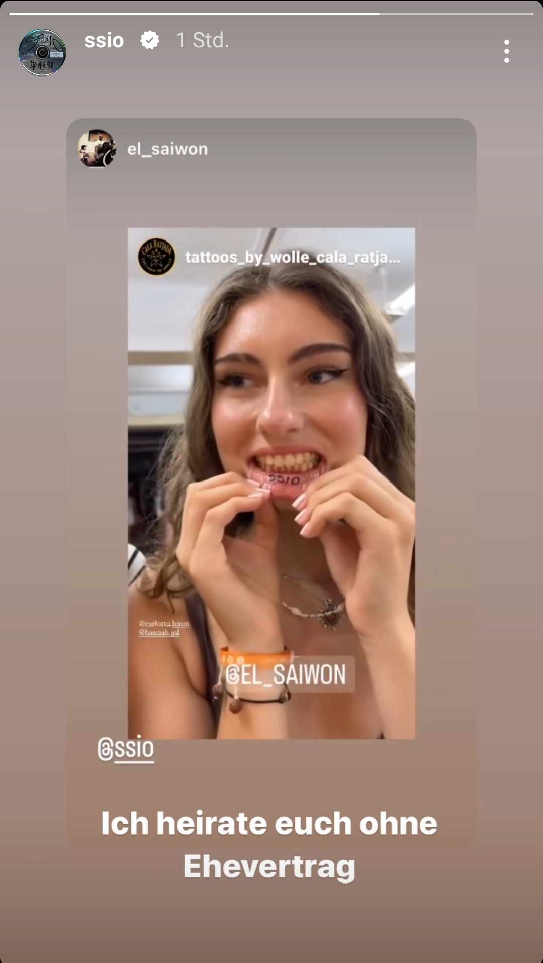 In seiner Instagram-Story zeigt SSIO, dass zwei weibliche Fans seinen Namen ab sofort auf der innen Seite ihrer Lippen haben. Dazu schreibt er: