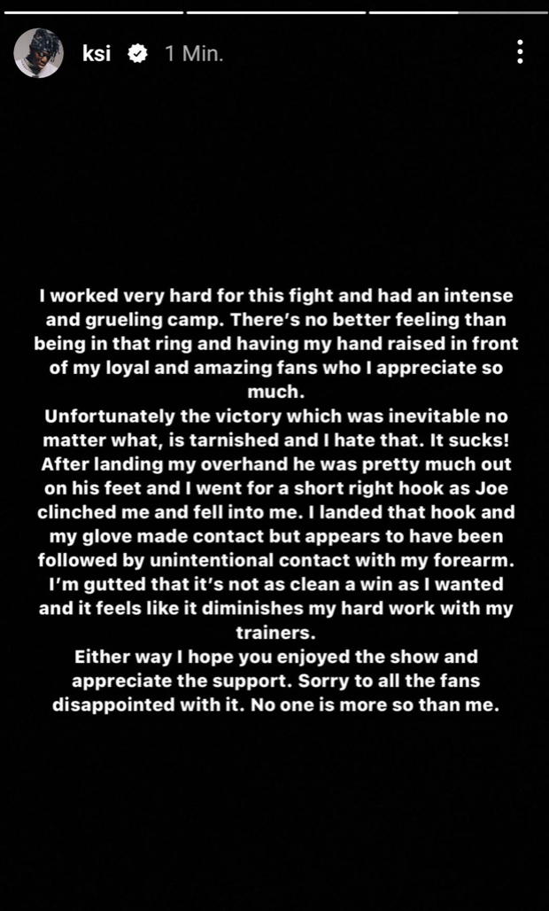 Ob der Sieg KSI im Nachhinein noch aberkannt wird, weiß man aktuell noch nicht.