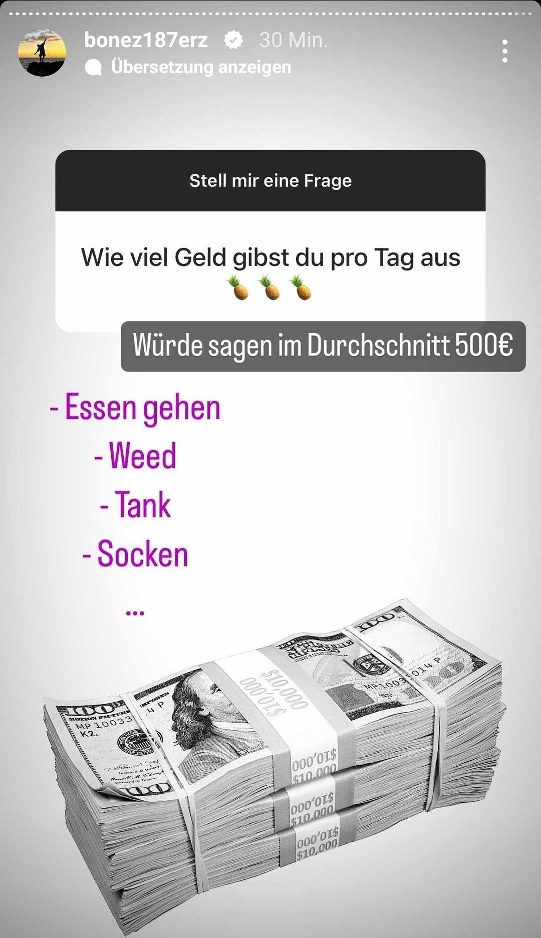 Im Rahmen einer Fragerunde verrät Bonez MC, dass er täglich rund 500 Euro ausgibt.