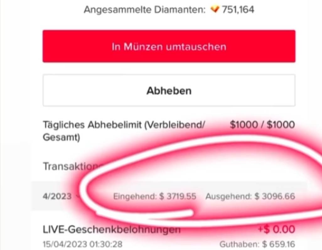 Mois zeigt, dass er 3719 Dollar (3349 Euro) innerhalb weniger Tagen verdient hat.