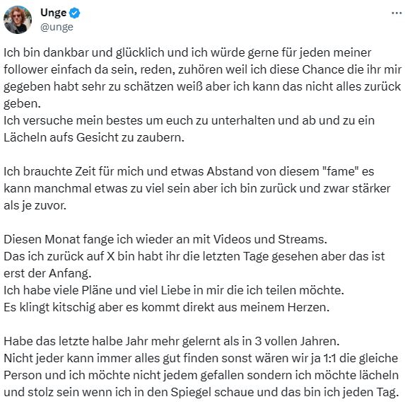 Noch gibt Unge nicht bekannt, auf welchen Content sich seine Community freuen darf.