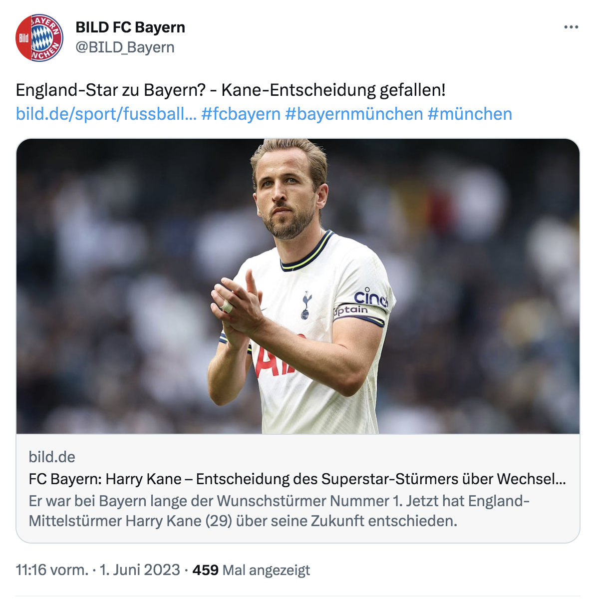 Laut den Berichten will Kane von Tottenham zu ManUnited wechseln. Vielleicht sogar für 0 Euro, 2024 läuft sein Vertrag aus!
