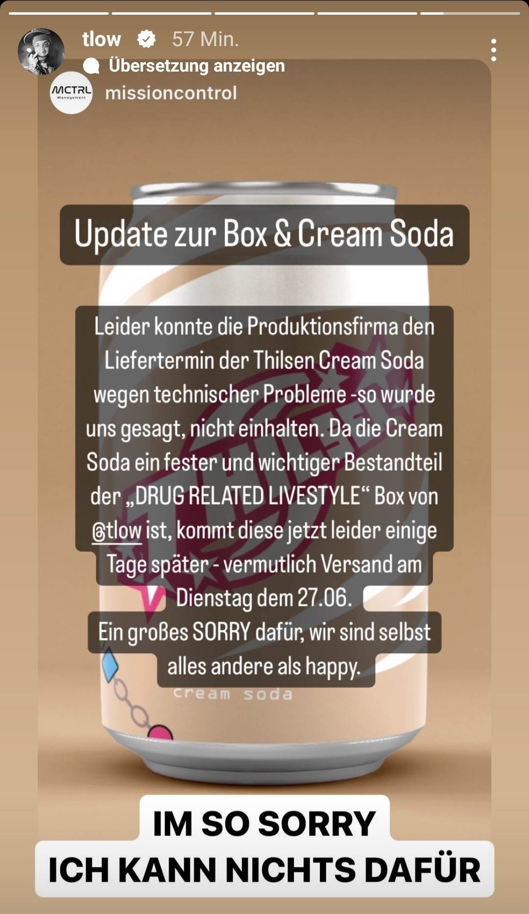 Die dazugehörige Box wird nicht passend ausgeliefert. Grund dafür ist ein technisches Problem bei der Produktion der Cream Soda, die in der Fan-Edition enthalten ist.