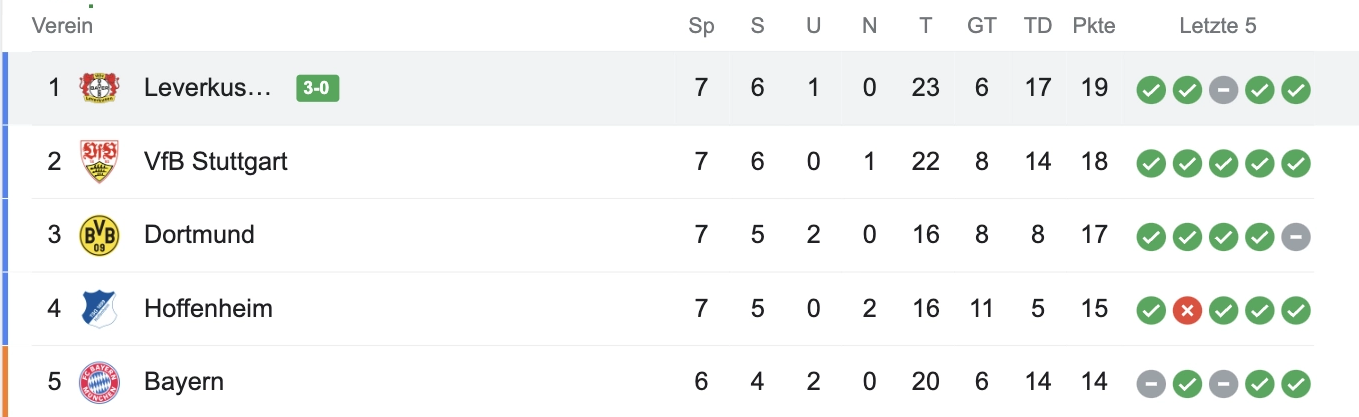 Durch einen 3:0 Sieg gegen den Tabellen-Letzten aus Köln festigt Leverkusen seine derzeit bestechende Form und krabbelt in der Tabelle an Stuttgart vorbei auf Platz 1!
