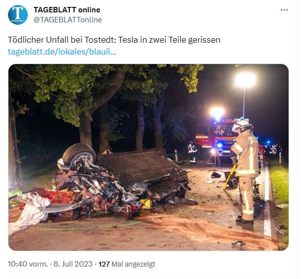 Tesla bei Unfall in zwei Teile gerissen – Fahrer tot!