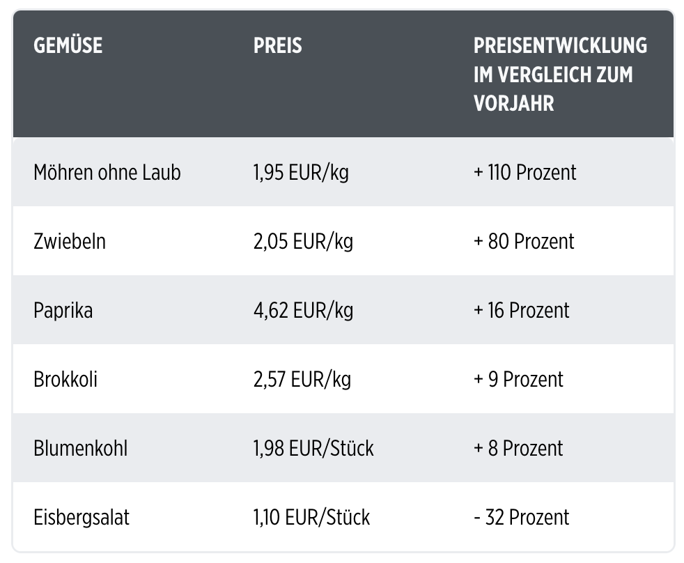 Ernährungs-Inflation in Deutschland: Gemüse ist super teuer geworden! Das zeigt eine Analyse der Agrarmarkt Informations-Gesellschaft.