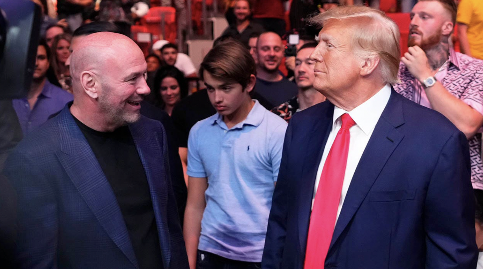 Obwohl Donald Trump nicht mehr der Präsident ist, ist er immer noch bei diversen Events ein gern gesehener Gast. Zum Beispiel auch bei der UFC…