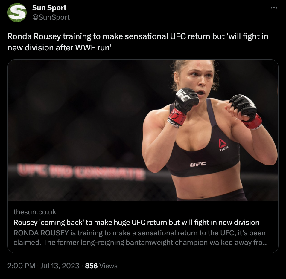 Diverse Quellen berichten es am Donnerstag: Ronda Rousey kehrt zurück in die UFC.