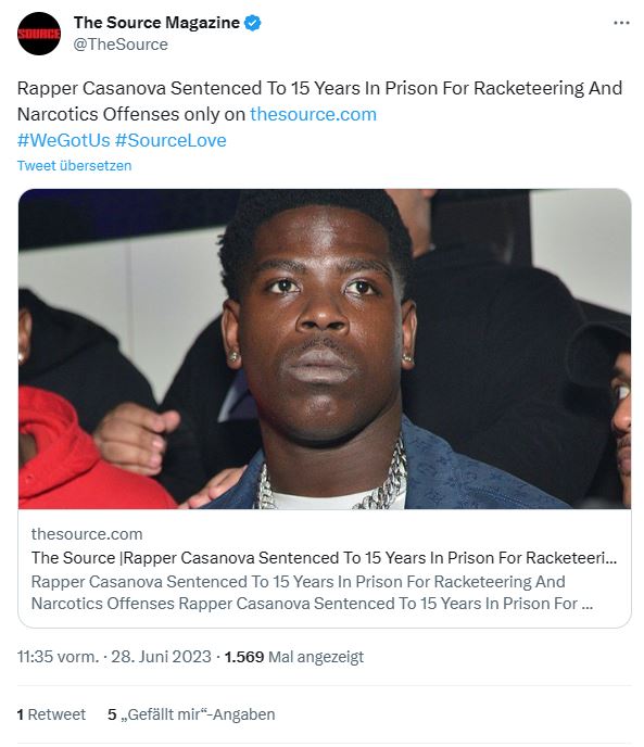 Für manche Rapper ist die Gangster-Attitüde mehr als nur Image. Der US-amerikanische Rapper Caswell Senior geht deswegen 15 Jahre hinter Gitter.