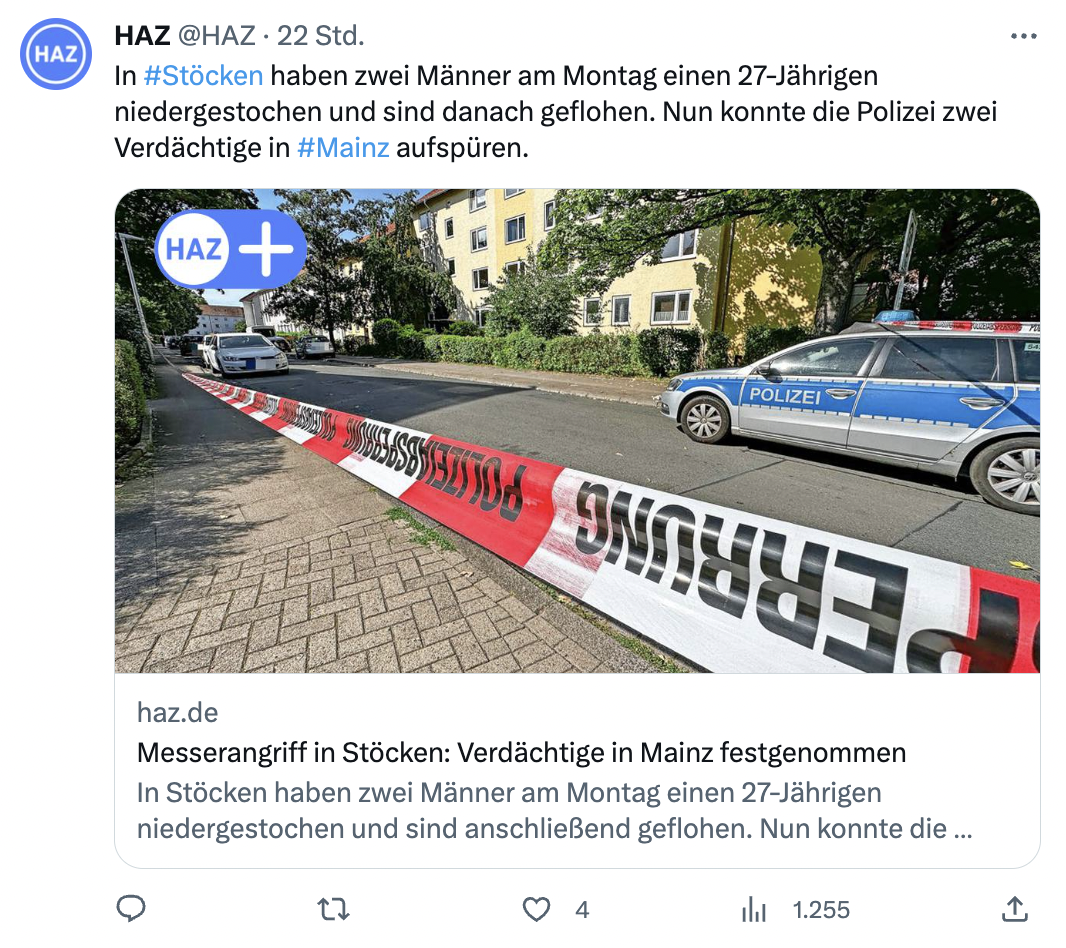 Es passiert bereits Anfang der Woche in Hannover. Mitten am Tag stechen ein Vater und sein Sohn plötzlich auf einen Syrer ein! Jetzt ist das Motiv für die Tat bekannt…