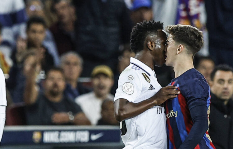 Der Sender El Chiringuito veröffentlicht die heißdiskutierte Szene. Gavi packt sich vor Vinicius in den Intimbereich.