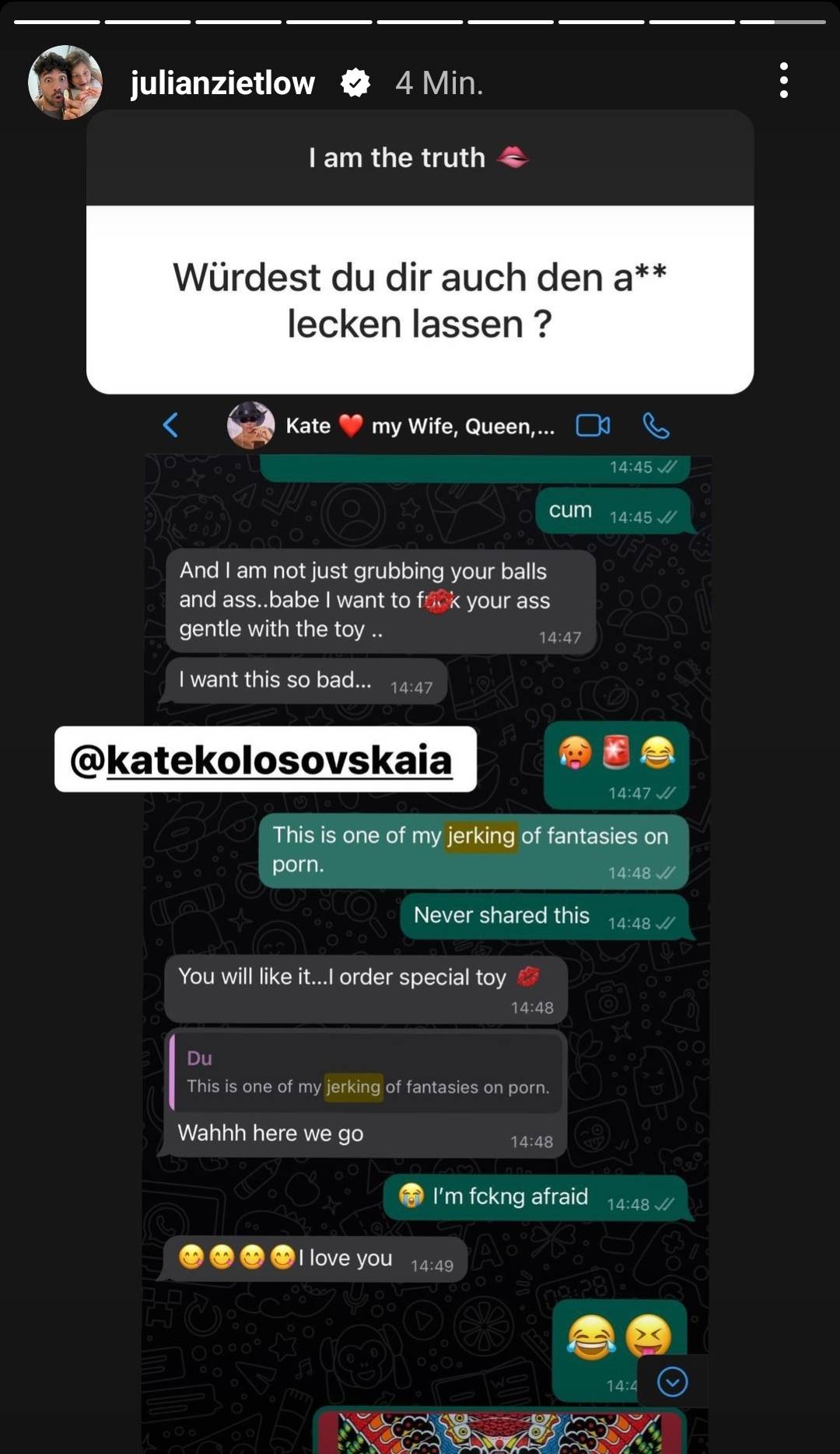 In einem WhatsApp-Chat mit seiner Freundin Kate zeigt er, dass die junge Dame ihn gerne von hinten nehmen möchte … und zwar mit einem Spielzeug.