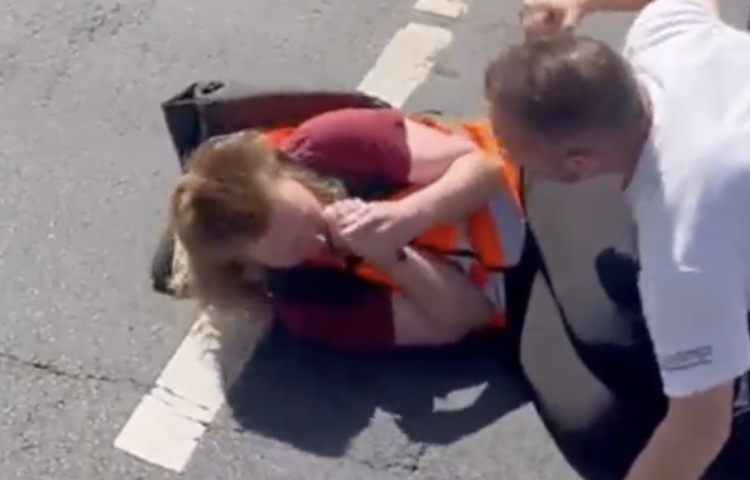 Er droht der Demonstrantin der „Letzten Generation“ mit der Faust. Vorher hat er einen Aktivisten mit seinem LKW angefahren! Dieser Berufs-Fahrer rastet komplett aus!