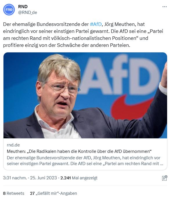 Heftige Aussagen von einem, der bis letztes Jahr selbst noch aktiv in der AfD war.
