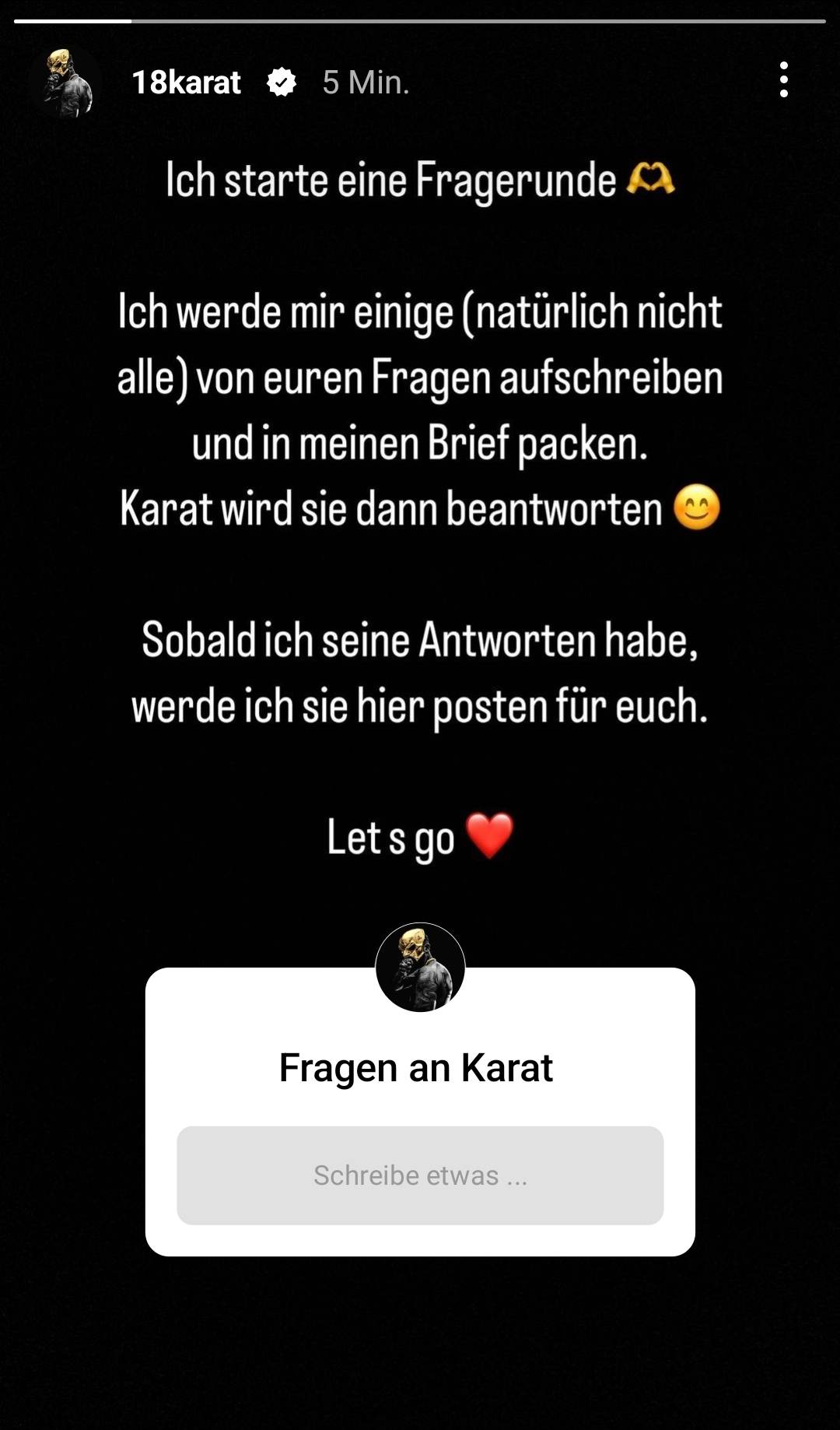Der Rap-Star wird anschließend die Fragen beantworten und dann postet seine Frau alles. Also, was wollt Ihr von ihm wissen?