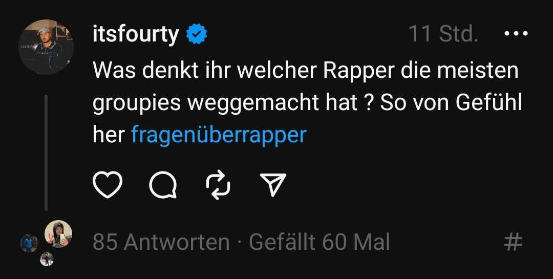 Auf Threads erkundigt sich der Platinrapper, welcher Rapper Eurer Meinung nach die meisten Groupies „weggemacht“ hat.