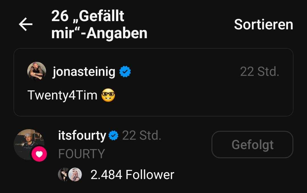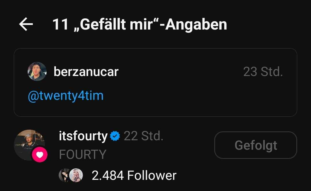 Fourty markiert gleich zwei „Twenty4Tim“-Antworten mit „Gefällt mir“. Scheint so, als ob der Platinrapper den Newcomer als den Schlechtesten sieht.