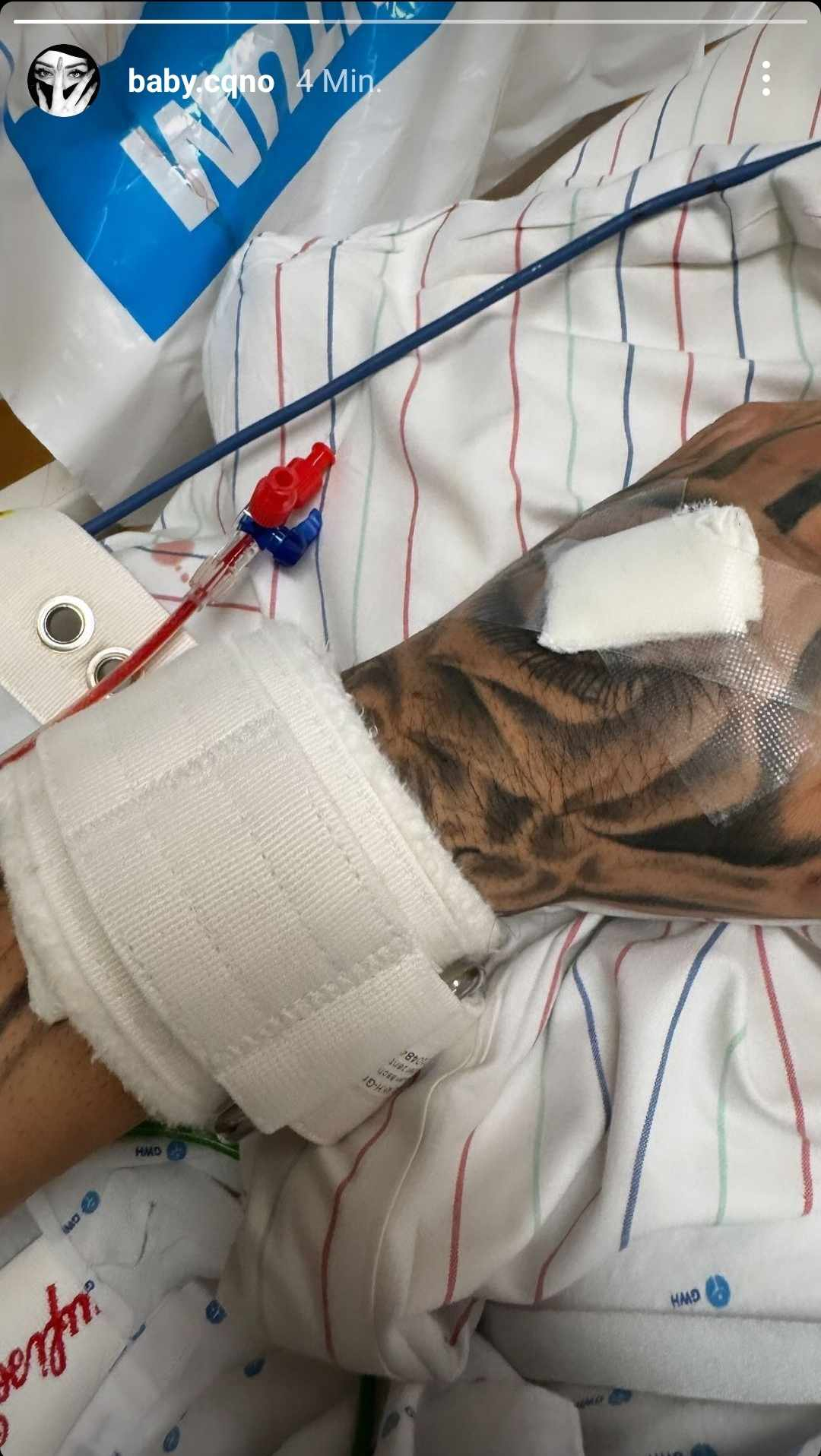 Auf ihrem Instagram-Profil teilt Yakarys Freundin ein Bild von der Hand des Rap-Stars und zeigt, dass sie sich im Krankenhaus aufhalten.