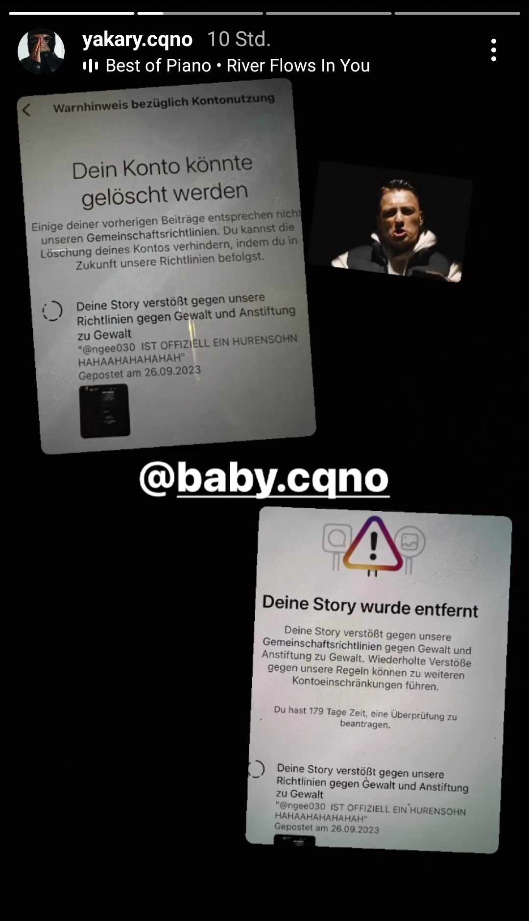 In seiner Instagram-Story zeigt der 23-Jährige, dass sein Profil wegen seinen Story-Angriffen gegen NGEE kurz vor einer Löschung steht.