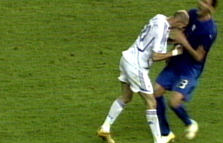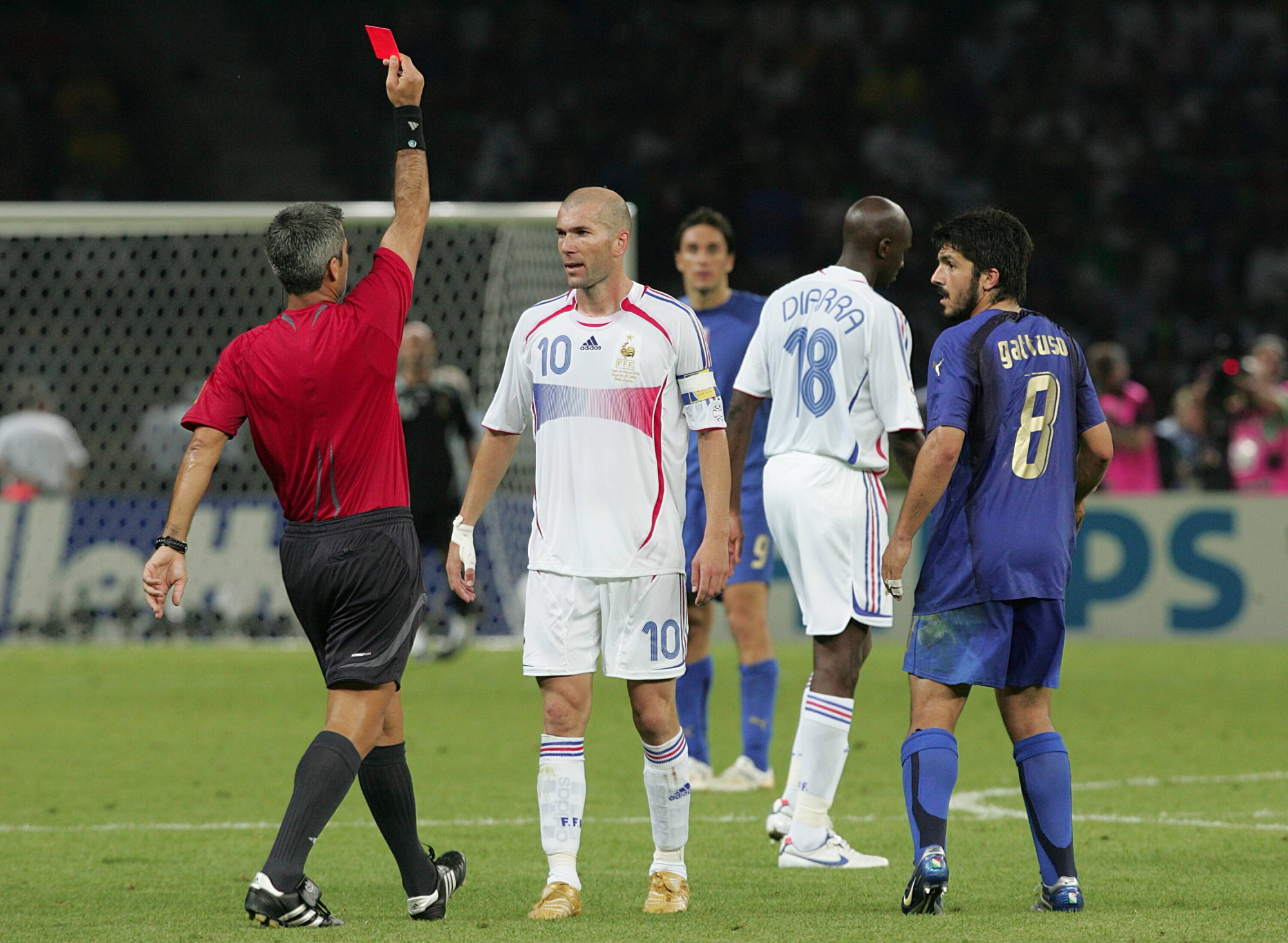 Was folgt, dürfte bekannt sein: Zidane bringt Materazzi mit einem Kopfstoß zu Boden und fliegt im WM-Finale 2006 vom Platz.
