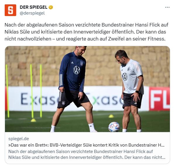 So bezeichnet Süle die Worte des Bundestrainers. Flick hatte Süle direkt nach dem Saisonfinale dafür kritisiert, dass er seiner Meinung nach das volle Potenzial nicht ausschöpfe.