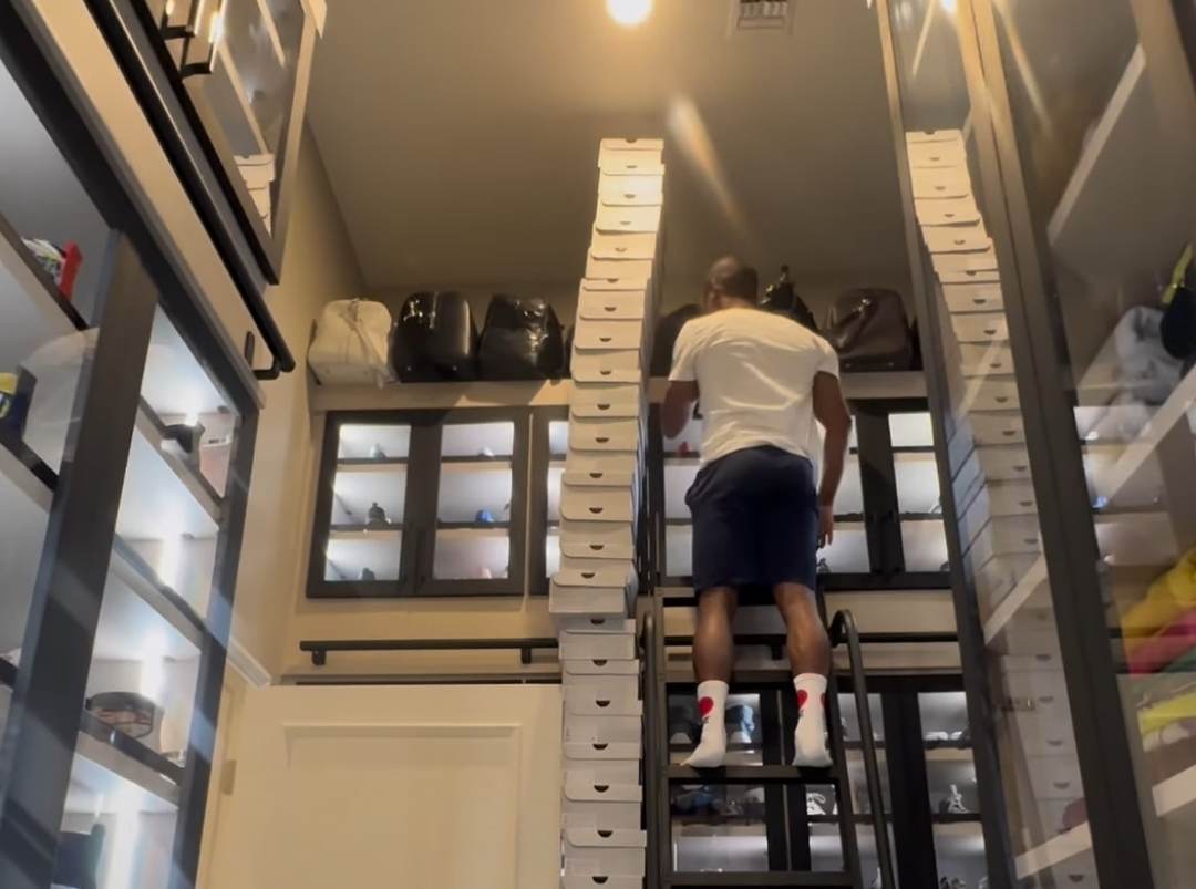 Natürlich hat Floyd Mayweather eine eigene Ankleide nur für seine Schuhe. Bis zur Decke stapeln sich die Kartons.